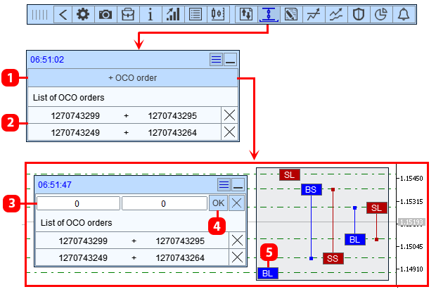 - Schaltfläche zum Festlegen der OCO-Orders.