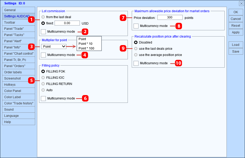 - Wenden Sie den Multiwährungsmodus auf den Parameter „Provisionshöhe für 1 Los“ an.