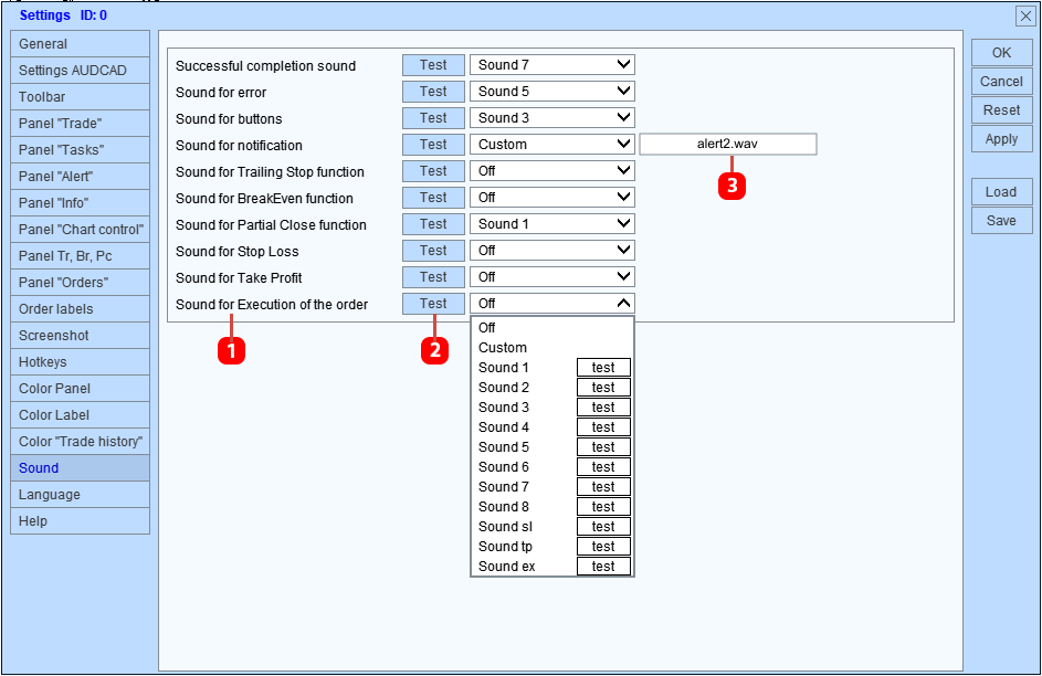 - Magic number – Kennung von Aufträgen und Positionen, die mit TradePanel eröffnet wurden. Jede Anwendung signiert ihre Aufträge und Positionen mit einer Kennung (Magic Number). Dies ist notwendig, damit die Anwendung nur mit ihren eigenen Aufträgen und Positionen arbeitet und diese nicht mit anderen verwechselt. Legen Sie unterschiedliche Kennungen (Magic Number) für TradePanel und alle Anwendungen fest, die auf dem Handelskonto funktionieren.