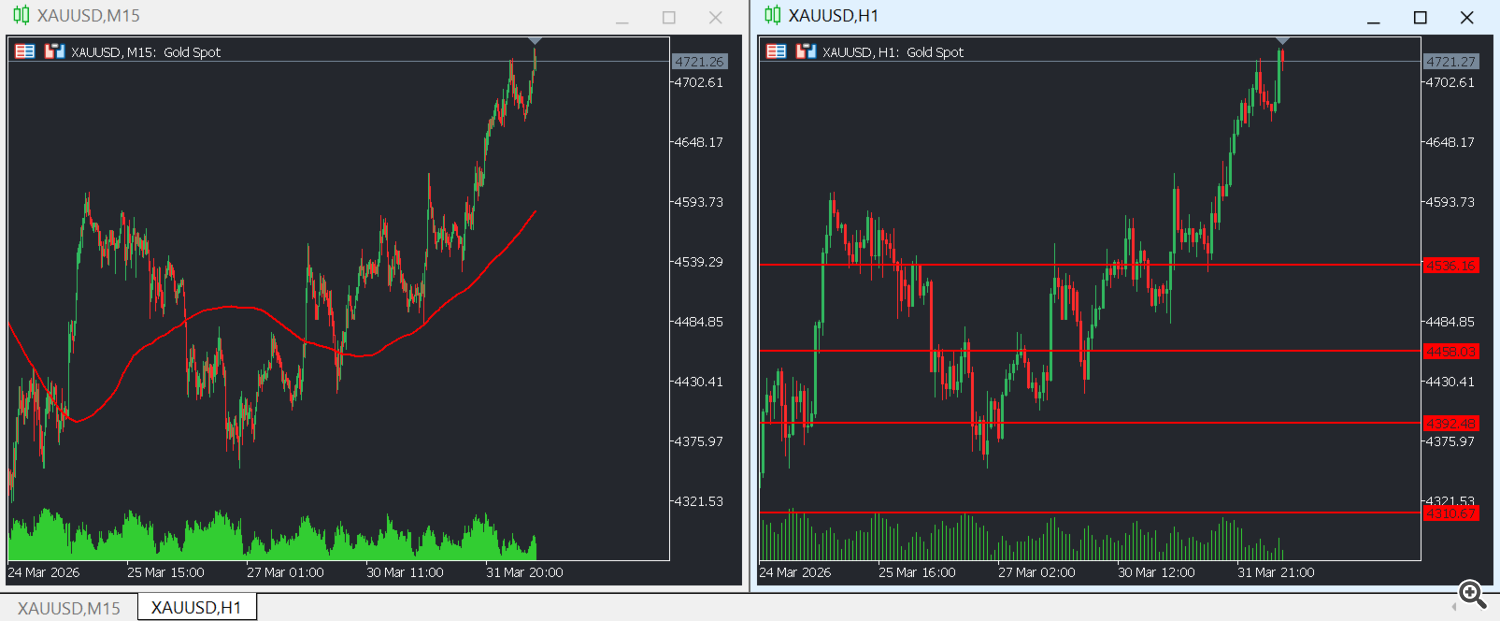 XAUUSD Technische Analyse: 1. April 2026 | Umfassende H1 & M15 Analyse