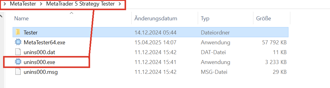Ich habe meine Terminals im /portable mode installiert, daher liegt bei mir alles (metatester64.exe des Terminals, termina64.exe, ...) im jew. Verzeichnis