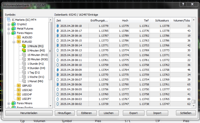 mir ist aufgefallen, dass ich den EA auf dem M1 Chart bis zu Jahresbeginn zurück testen lassen kann (6 Monate), andererseits ist aber Schluss nach ein paar Wochen, wenn ich im M1 Chart visuell zurück scrolle, weil nicht mehr Daten in der Historie sind....wie ist das möglich? Wie kann der EA mit Daten arbeiten, die gar nicht in der Historie sind?