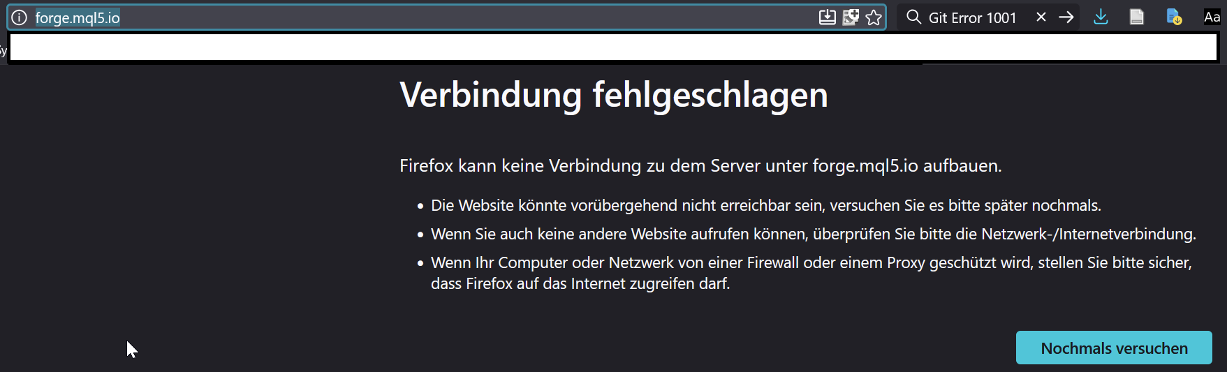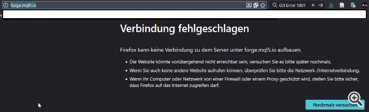 Connection failedFirefox cannot connect to the server at forge.mql5.io.