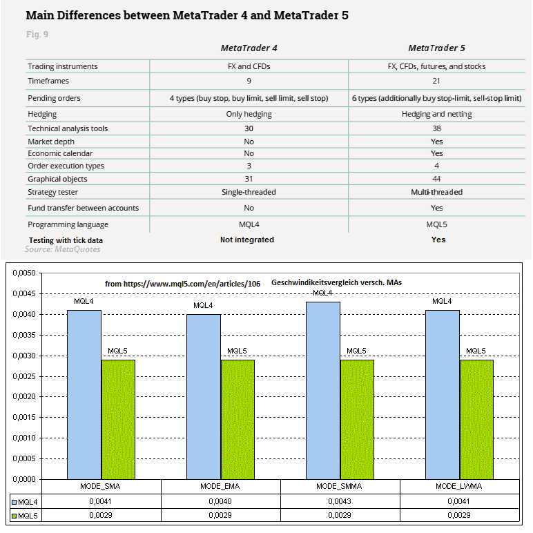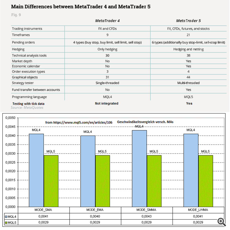 Hier ein Vergleich (schon etwas älter, dh. MT5 hat sich noch weiterentwickelt):