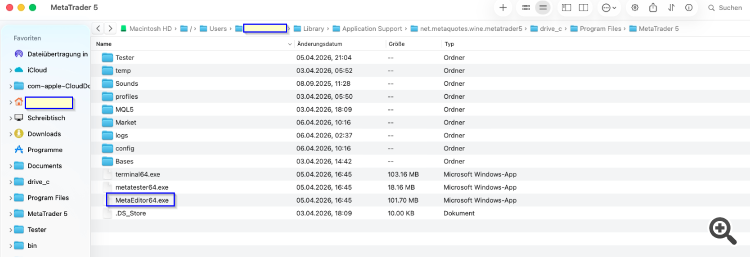 Hat etwas gedauert, habe versucht den MetaEditor direkt zu öffnen, sonst wüsste ich nicht wie es gehen solle.