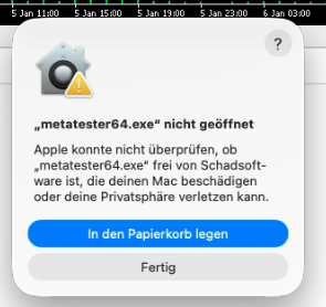 Tauchen in Systemeinstellungen unter Sicherheit auf, muss Metatrader neu starten auf "dennoch erlauben" klicken mit Passworteingabe.