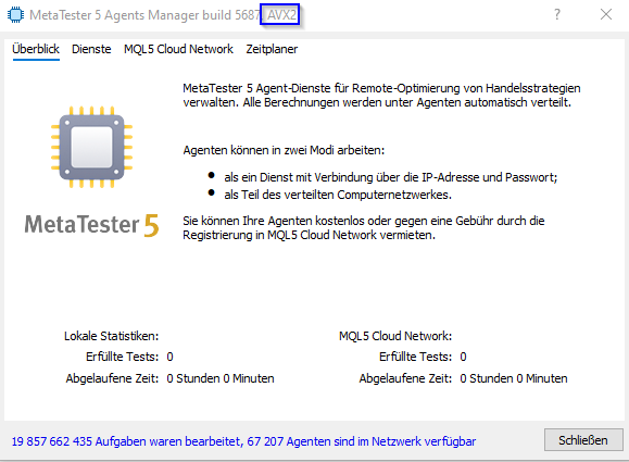 Im Dialog MetaTester steht nicht AVX2 ? So wie ich es bei mir auf dem Windows-Rechner gesehen habe wird es für den terminal64 benötigt, damit im MetaTester die Windows-Dienste angelegt werden können ?