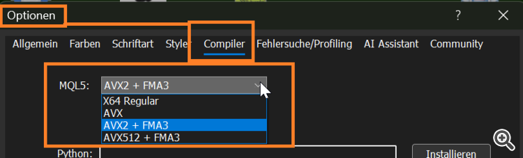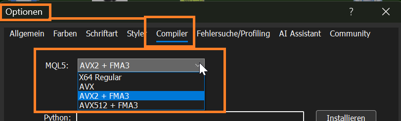 Die ist eine der Prozessor-Option Advanced Vector Extensions, der neuesten Intel-Prozessoren, wobei AVX2 der (untere) Standard ist, mit dem die PCs der Cloud kompatibel sein sollen. Es bedeutet, dass nur mit AVX2 kompilierte EAs (kann man im Editor einstellen) in der Cloud laufen.