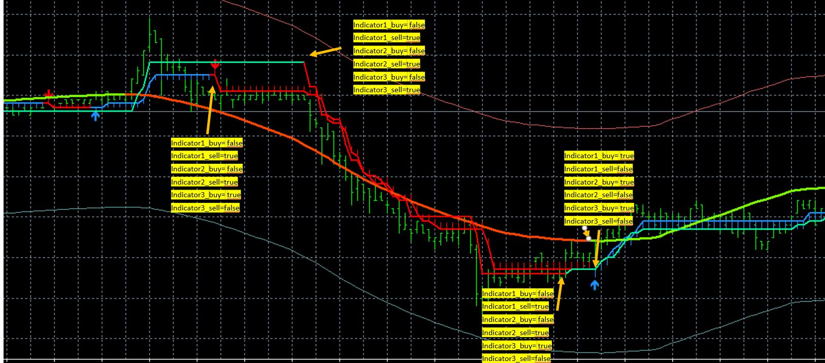 necessary that the EA changes 2 boolean variables for each indicator for a buy/sell signal at every bar.