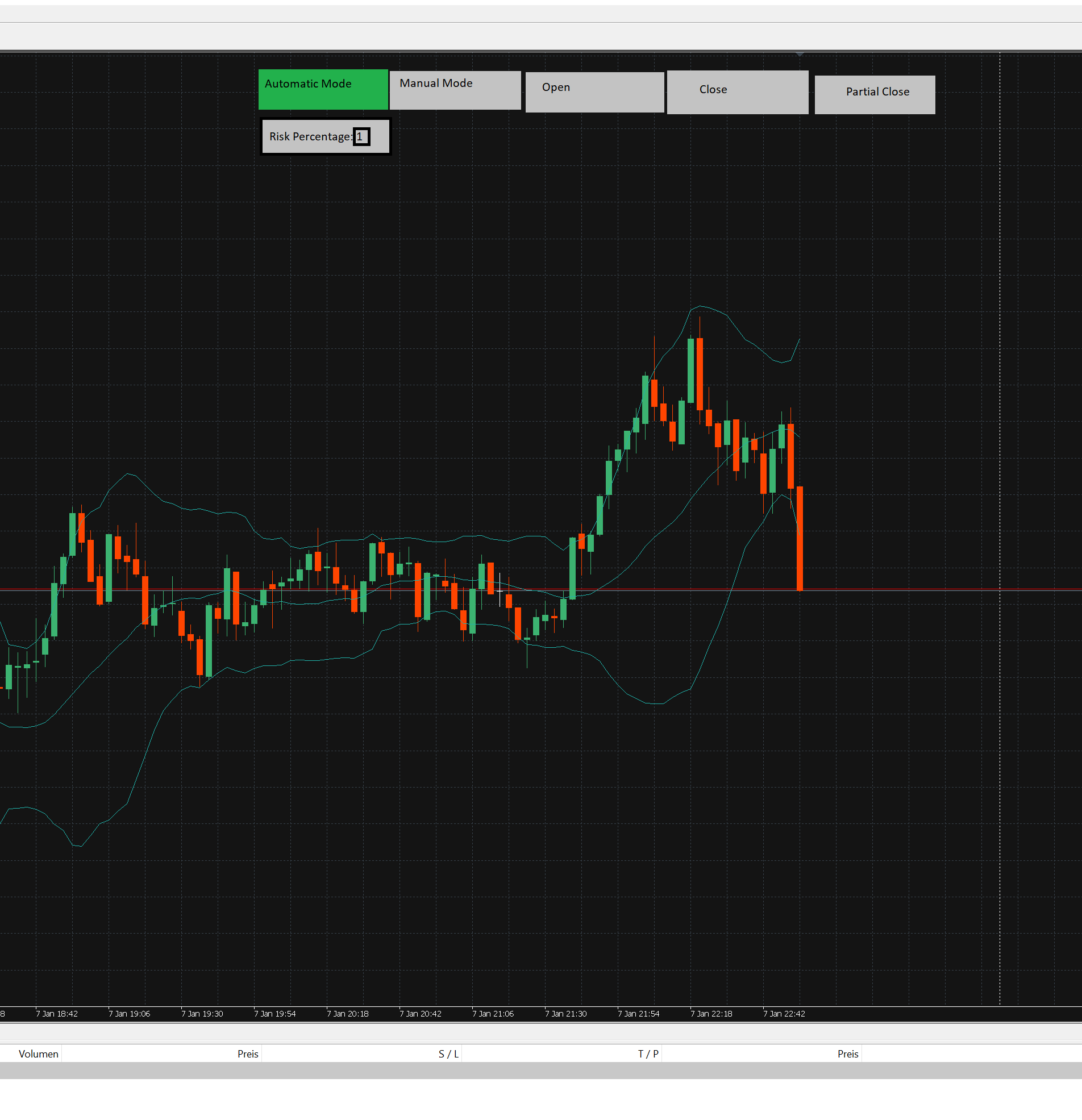 Creation of a Limit order at BB lines (Upper Band = Sell; Lower band = Buy)