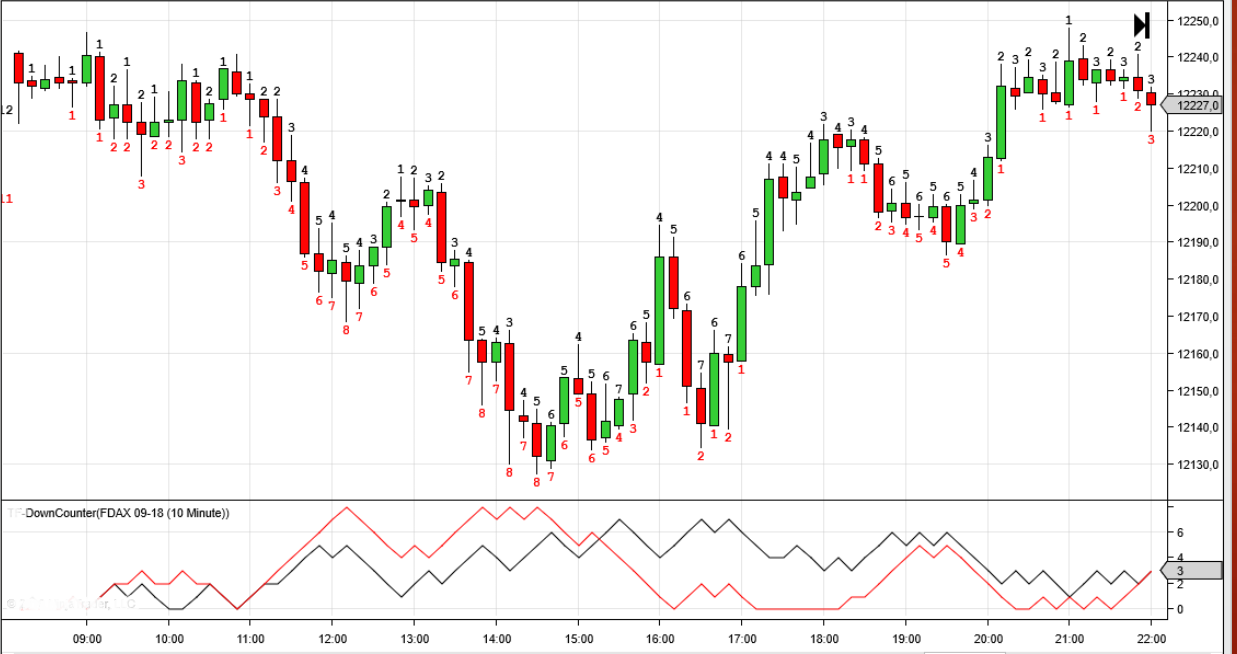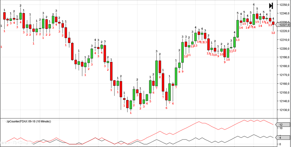 Brauche einen Indikator bzw. zwei Indikatoren in welchen die Kerzen als Up- bzw. Down Counter fortlauifend gezählt werden: