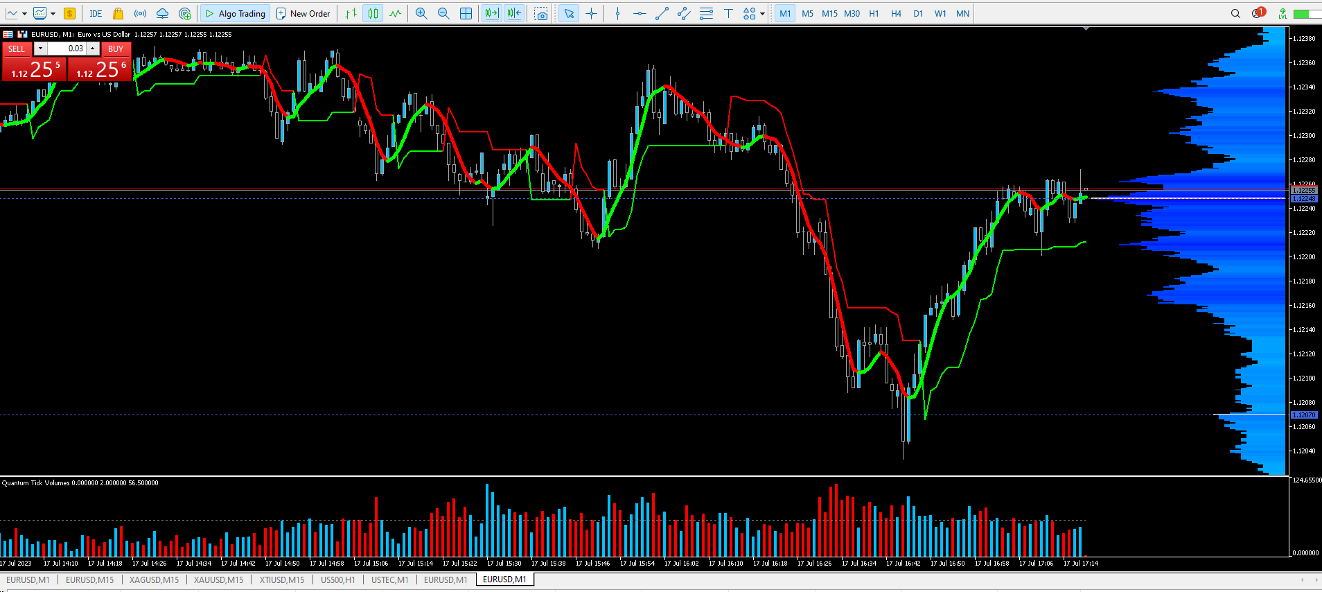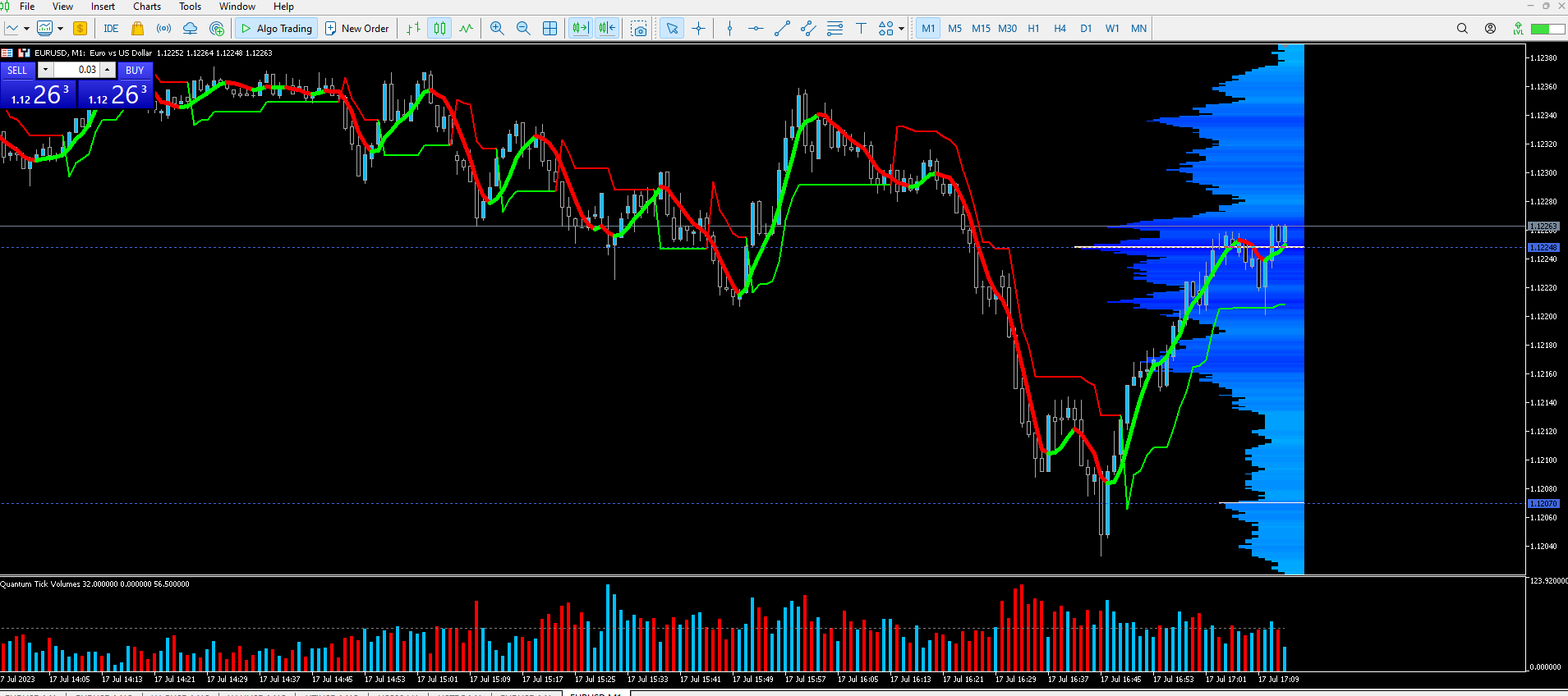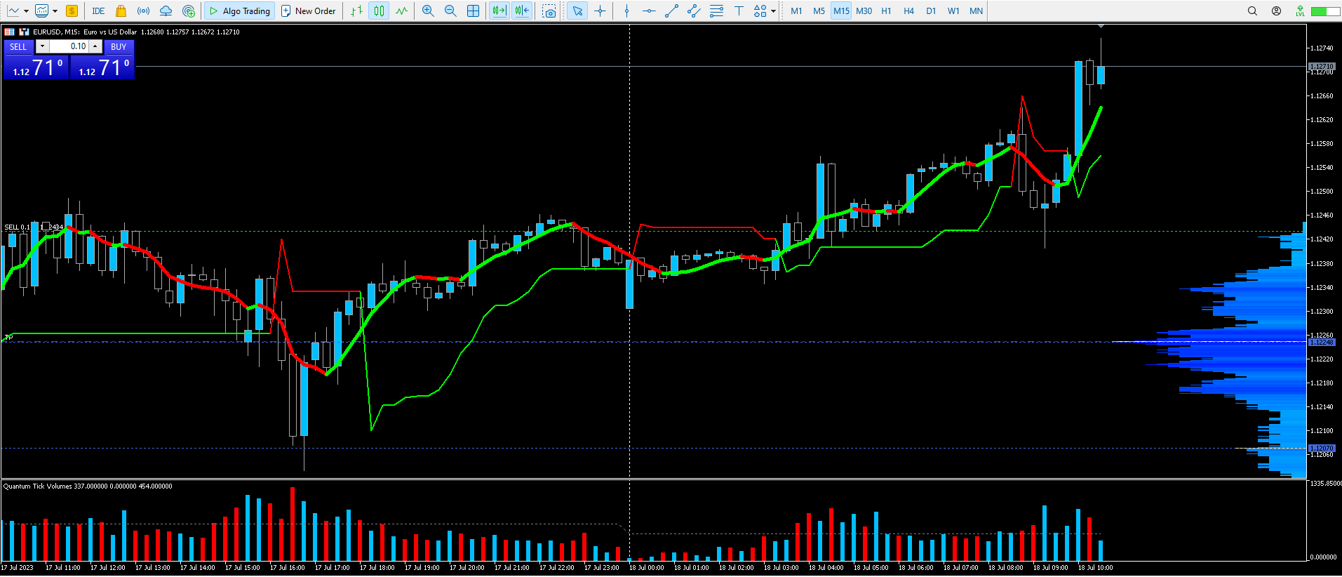 Running the indicator over a day, but stll showing the volume profile of the day before.