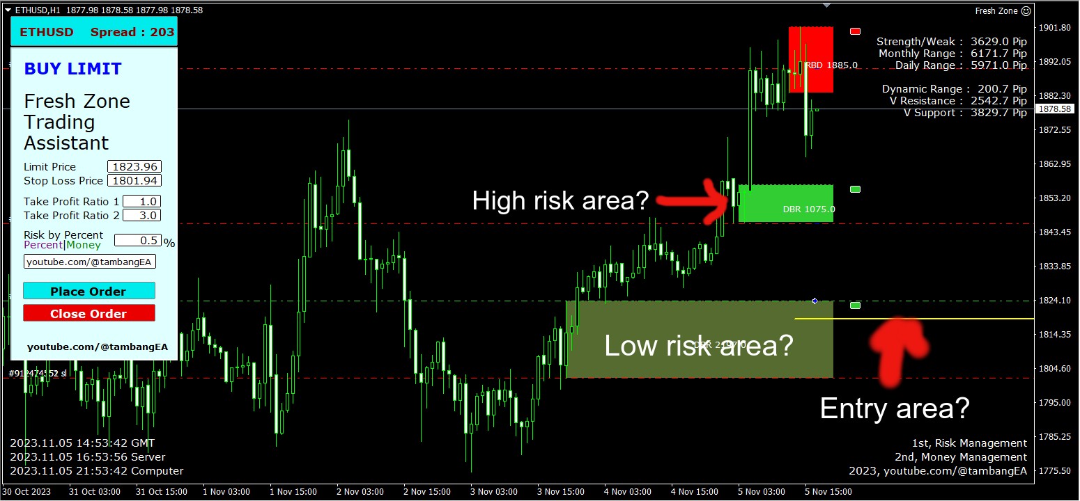 2. What is the function of yellow line near demand area? Does it represent entry area? Or support area?