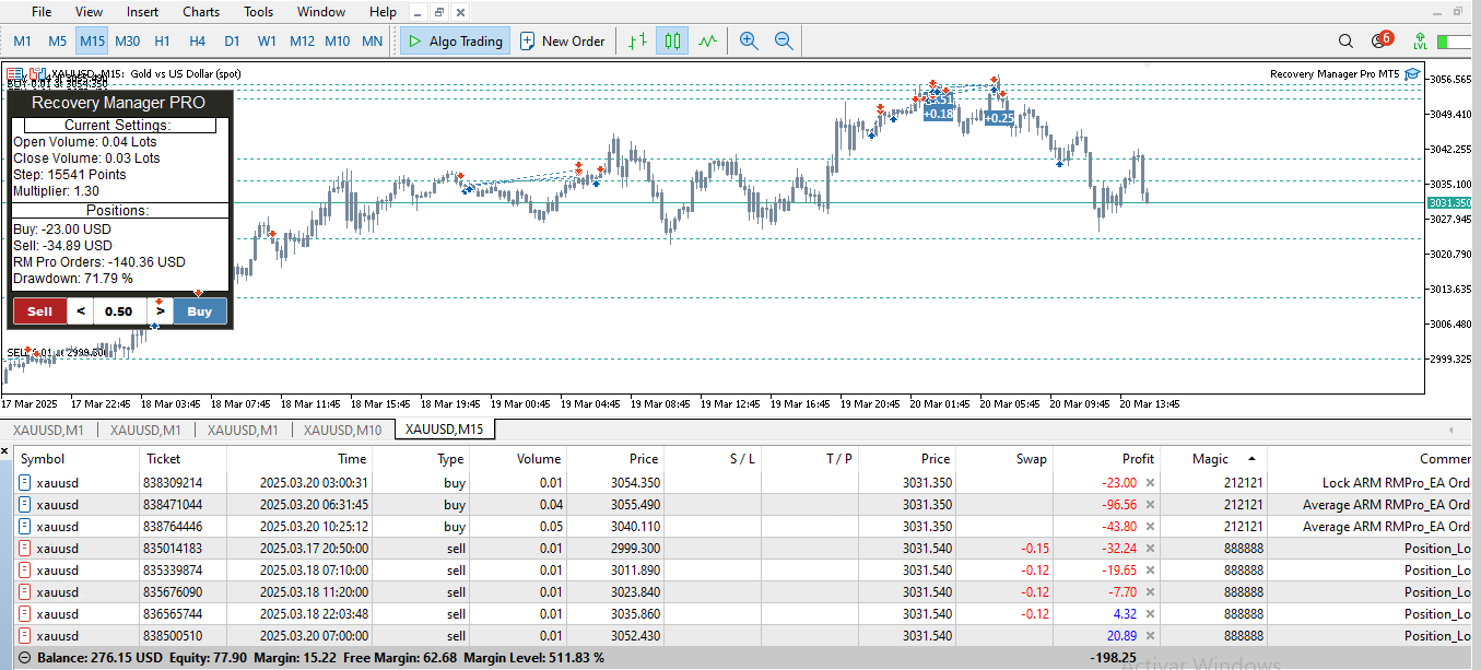 I would like to know what happens if a trade enters recovery mode and the initial grid of losing positions goes into lock mode. The newly opened recovery trades by the EA might also move further south, even with small lot sizes and large step increments. My question is: Will the EA, at a certain point, open a second lock to also protect the recovery trades if necessary? I am trying to recover a 30% loss on my account, but with the recovery trades, I am now at a 40% unrealized loss. Thank you for your help.Hello,