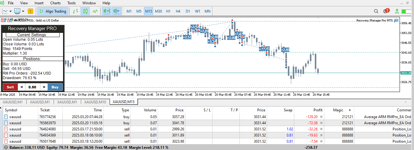 I had to put an extra $1K and i guess that ill have to put more to avoid clean the account, the EA opened trade against the trend.