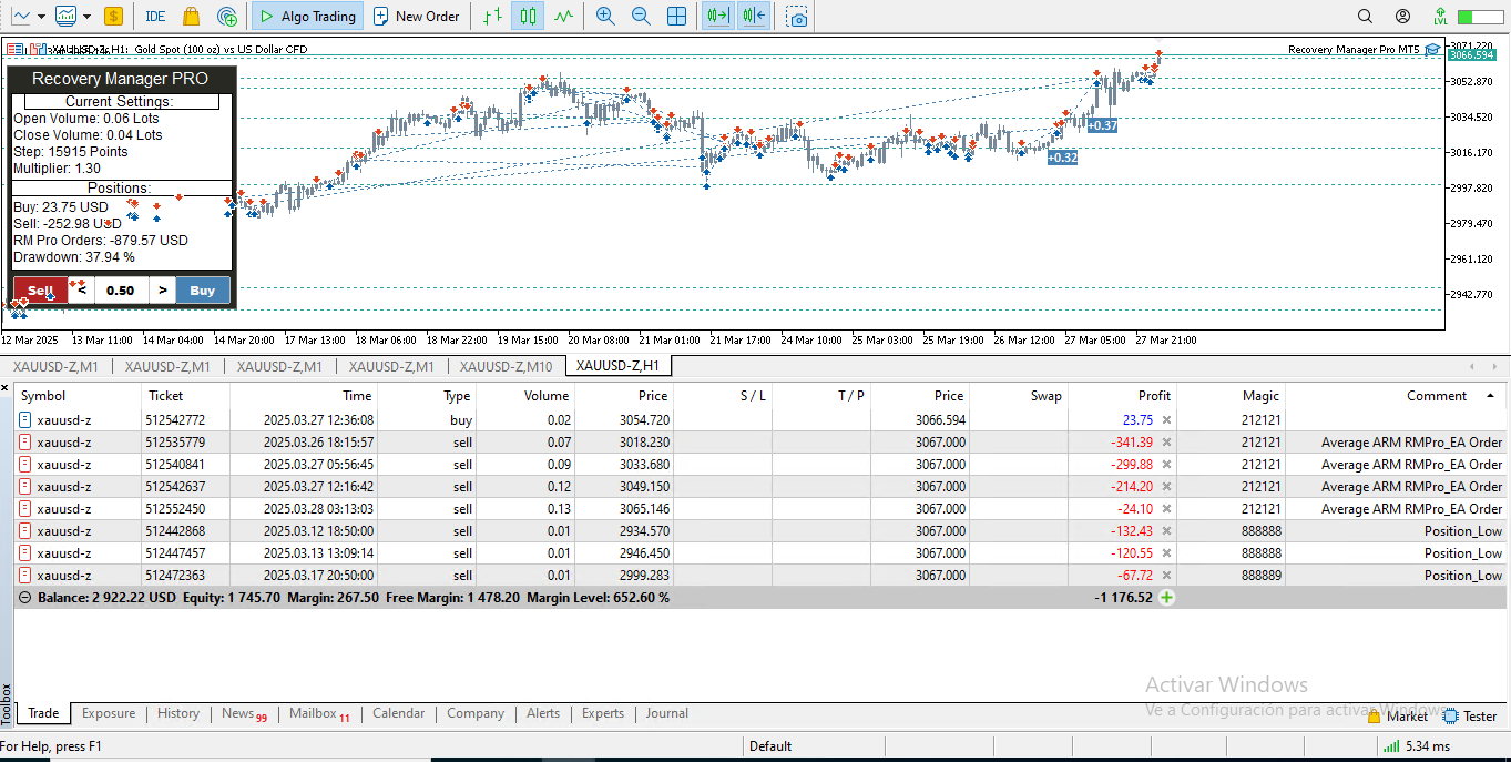 I already been testing and using the recovery but i need to say that is a little dangerous if the pair is volatile, with gold i put to work yesterday with a 10% of DD, using lock yes. but the EA begin to open more bigger lot sizes against the trend, you have to be able to put some $$ in the balance to survive, i had the same behaviour the first times that use the EA, be carefull, not all is super easy.