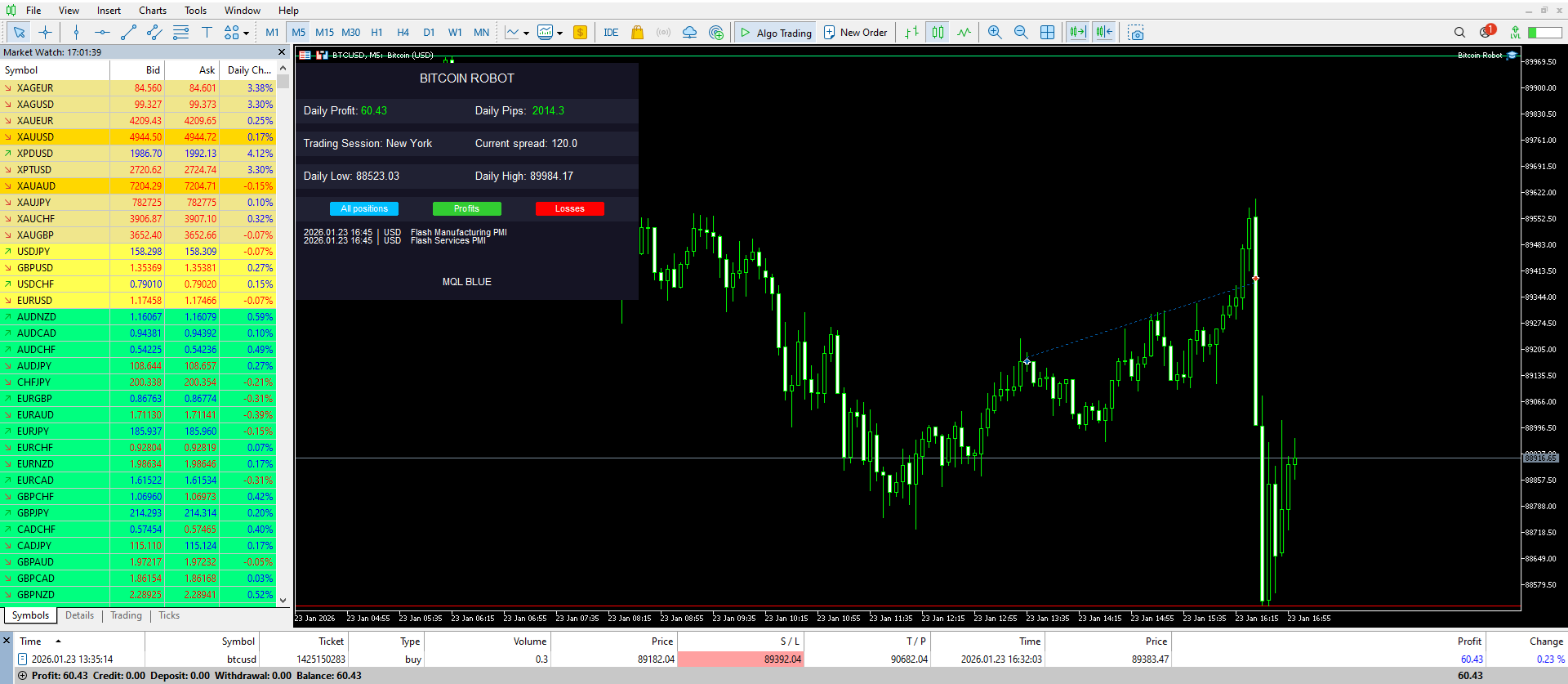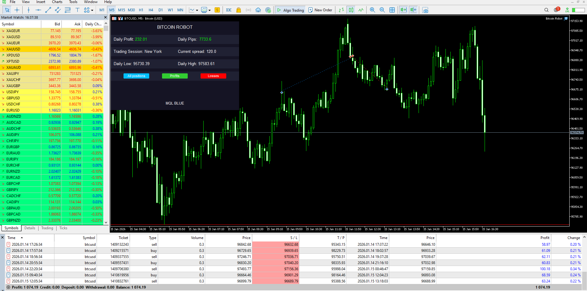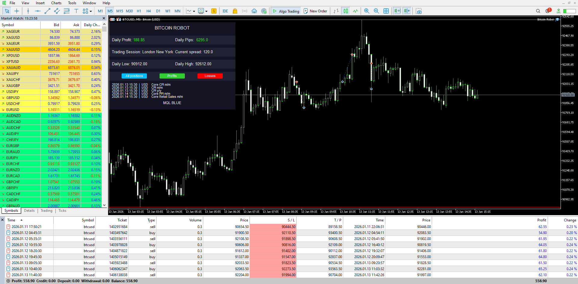 Bitcoin Robot is also protected during important news, when high-impact news comes out, the robot doesn't open positions before and after 60 minutes after the news.
