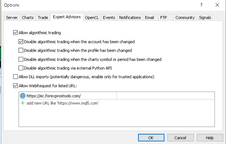 Hello Babak, in the common tab there is "Allow modification of Signals settings" and "Allow Algo Trading", are these required to be turned on?