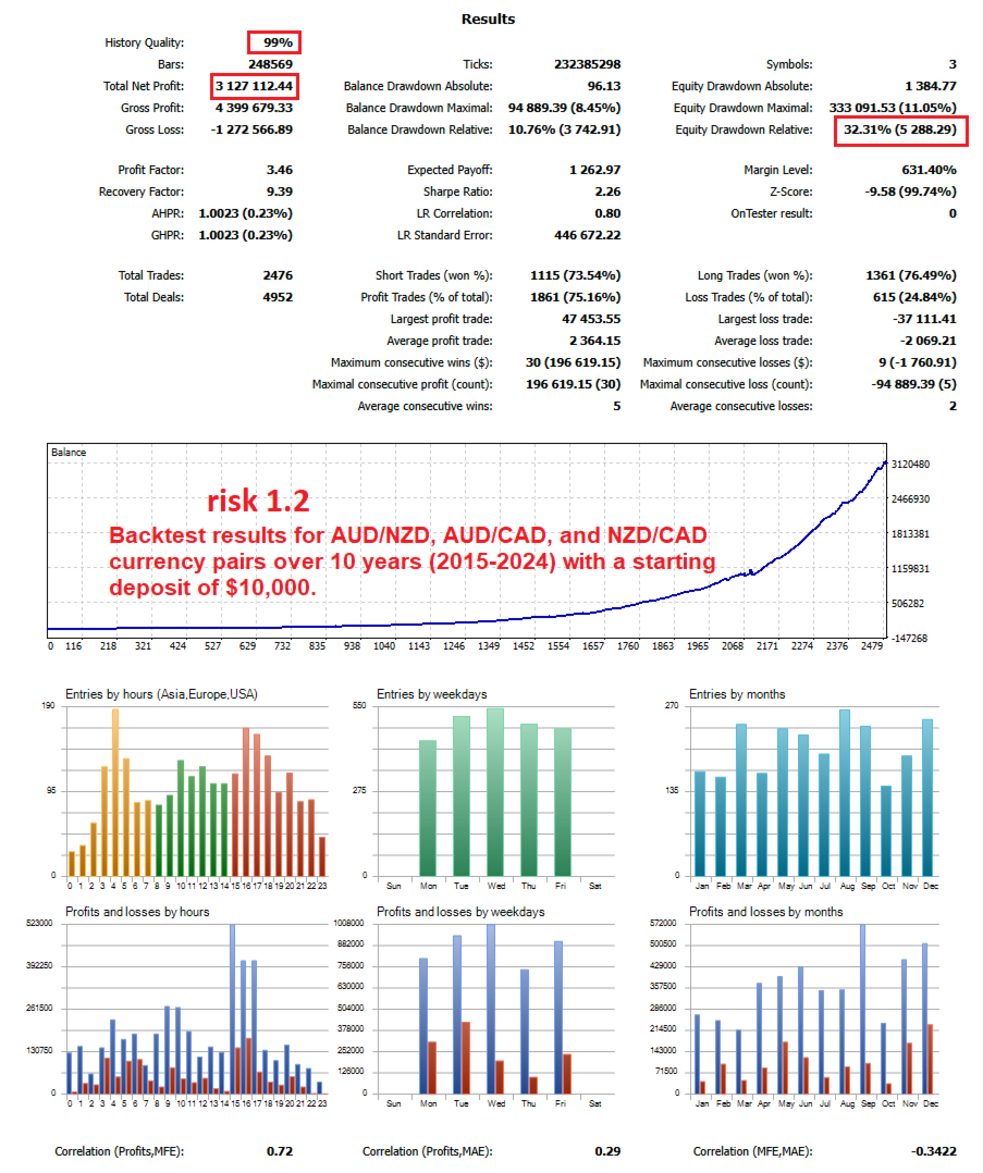 - Paare:Die bevorzugten Währungspaare sind AUDNZD, AUDCAD und NZDCAD aufgrund ihrer relativ stabilen Kursschwankungen und geringeren Auswirkungen von volatilen USD-Nachrichten. Zusätzlich können Sie optionale Paare wie AUDUSD, NZDUSD, EURUSD, EURGBP, EURCAD einbeziehen, aber Sie sollten die maximale Anzahl von Handelspaaren zur gleichen Zeit auf 1 begrenzen. Hyperpaare wie EURNZD, EURAUD, GBPNZD, GBPAUD, GBPCAD und alle Variationen von CHF und JPY sollten vermieden werden.