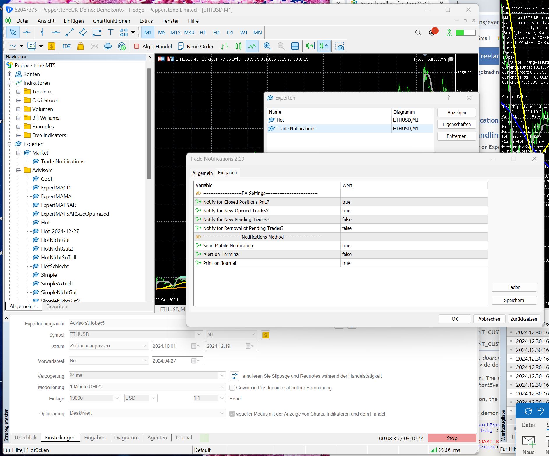 But I still do not get any messages regarding the trades initialized from my advisor. Related to the "Trade Notifications" there are also no entries at all in the journal.