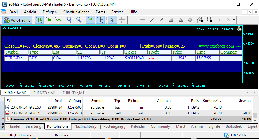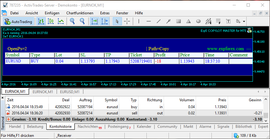 I open a Buy Order at the master with 0.04 Lot.