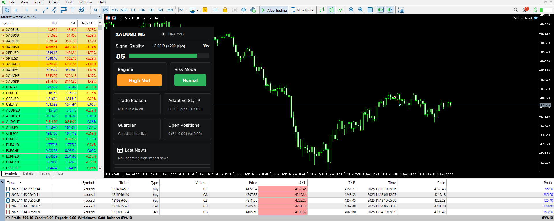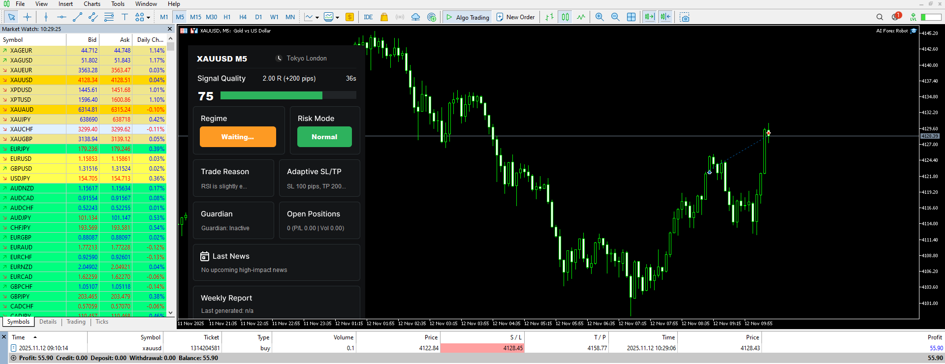 Next week we will start expanding the AI learning model to include the EURUSD pair and additional pairs will be introduced gradually over the coming weeks. At the moment the AI Robot works on XAUUSD for which it was trained for several months, as we mentioned earlier the model was trained on more than twenty million historical XAUUSD data points through a three stage learning process.