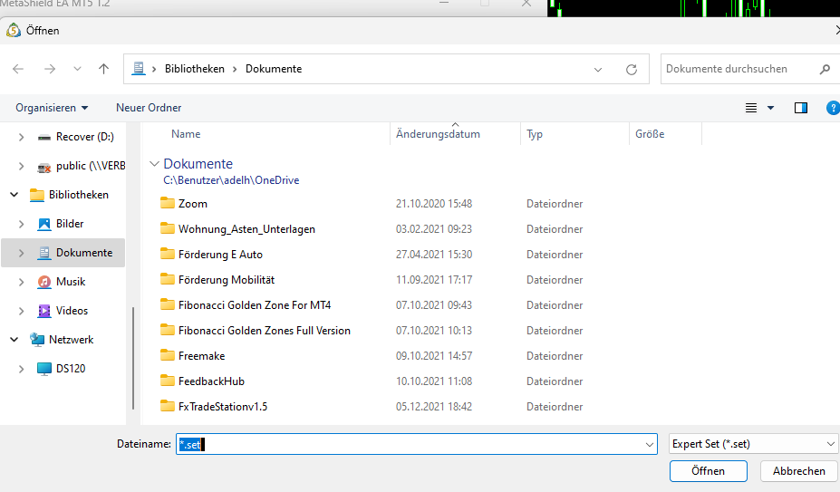 Dann eur/usd asset 1Min geöffnet und EA drag an drop eingefügt. Bei Eingaben set load stehe ich an.