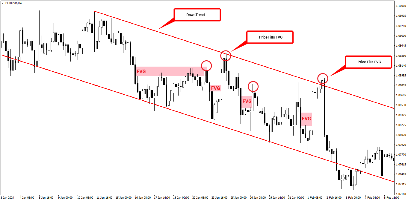 One of the main reasons traders focus on FVGs is the likelihood of price retracing to fill the gap before resuming its original trend. Price action traders often count on the market returning to fill these gaps, using them as potential entry or exit points. Once an FVG is filled, traders often expect the trend to continue in the direction of the covered gap, which is why identifying these gaps can be so crucial to a trading strategy.
