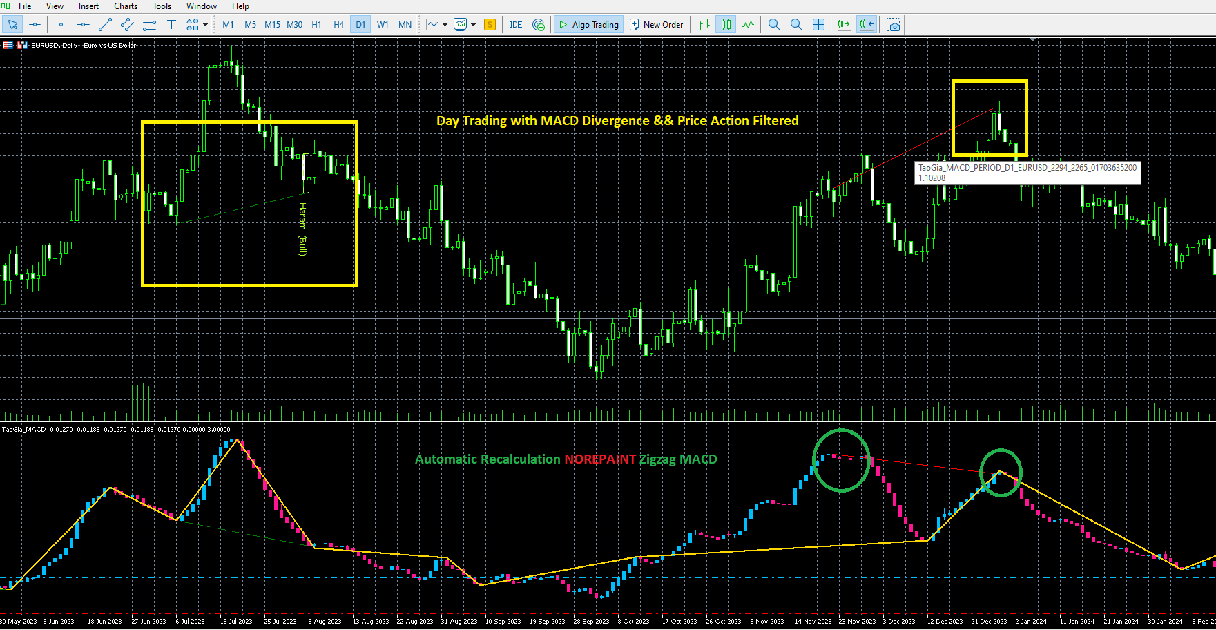 Reduzierte Fehlsignale: Die Filtermechanismen minimieren Fehlalarme, die durch Rauschen oder unbedeutende Kurs-/MACD-Schwankungen verursacht werden.