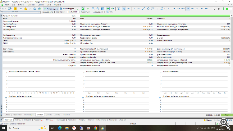 При тестировании с рекомендуемыми настройками советник не открыл ни одной сделки.