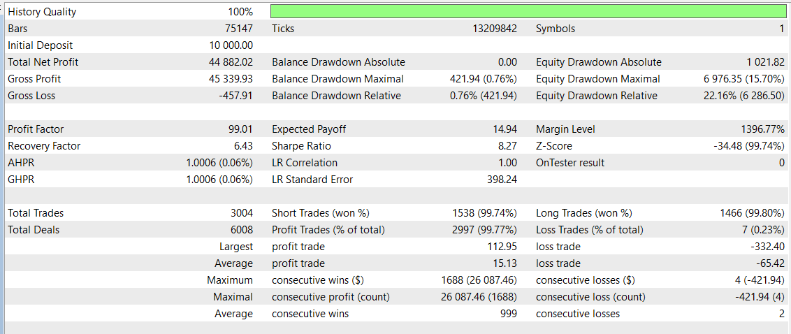 Alle angehängten Backtests in den Bildern wurden mit "Every tick based on real ticks" durchgeführt, was die genaueste Methode zum Testen eines EA ist.