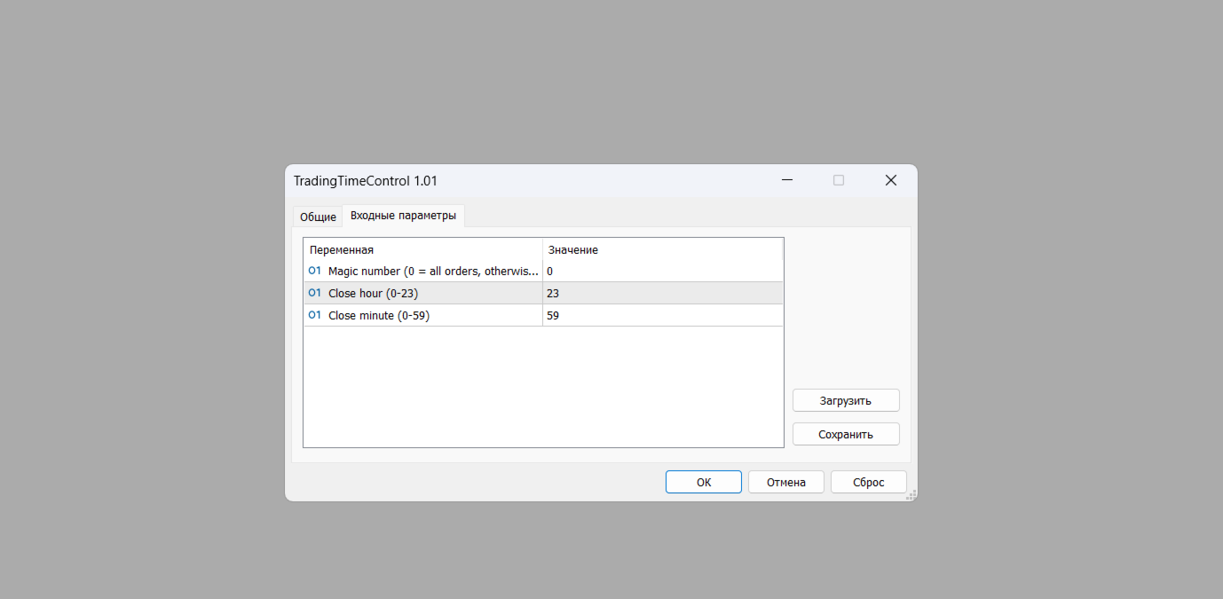 TradingTimeControl ist ein Dienstprogramm, das als Expert Advisor für MetaTrader 5 implementiert ist. Es schließt automatisch alle offenen Positionen und löscht schwebende Aufträge zu einer bestimmten Zeit am Tag. Dieses Tool wurde für Händler entwickelt, die das Positionsmanagement mit flexiblen Einstellungen automatisieren möchten.