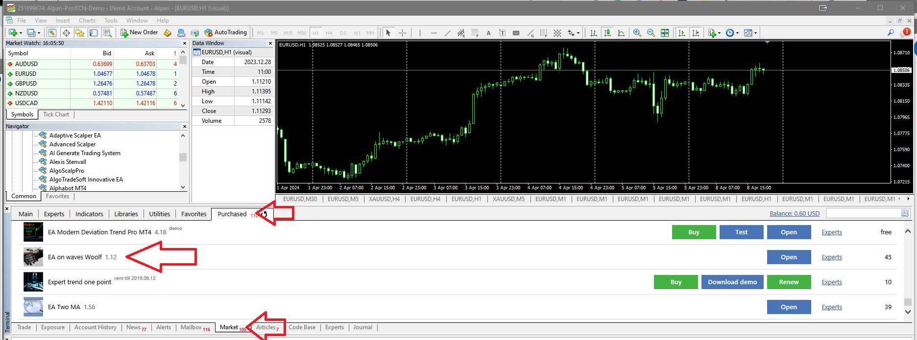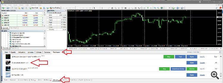 2. Download the Expert Advisor from the MARKET - PURCHASED tab