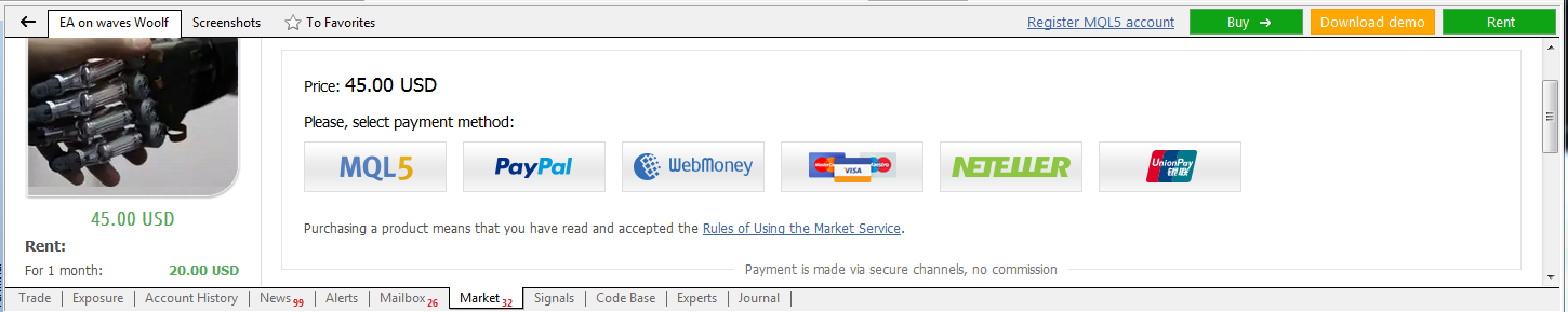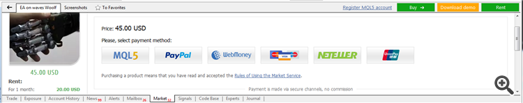 I tried to buy it directly from Metatrader (market) in terminal