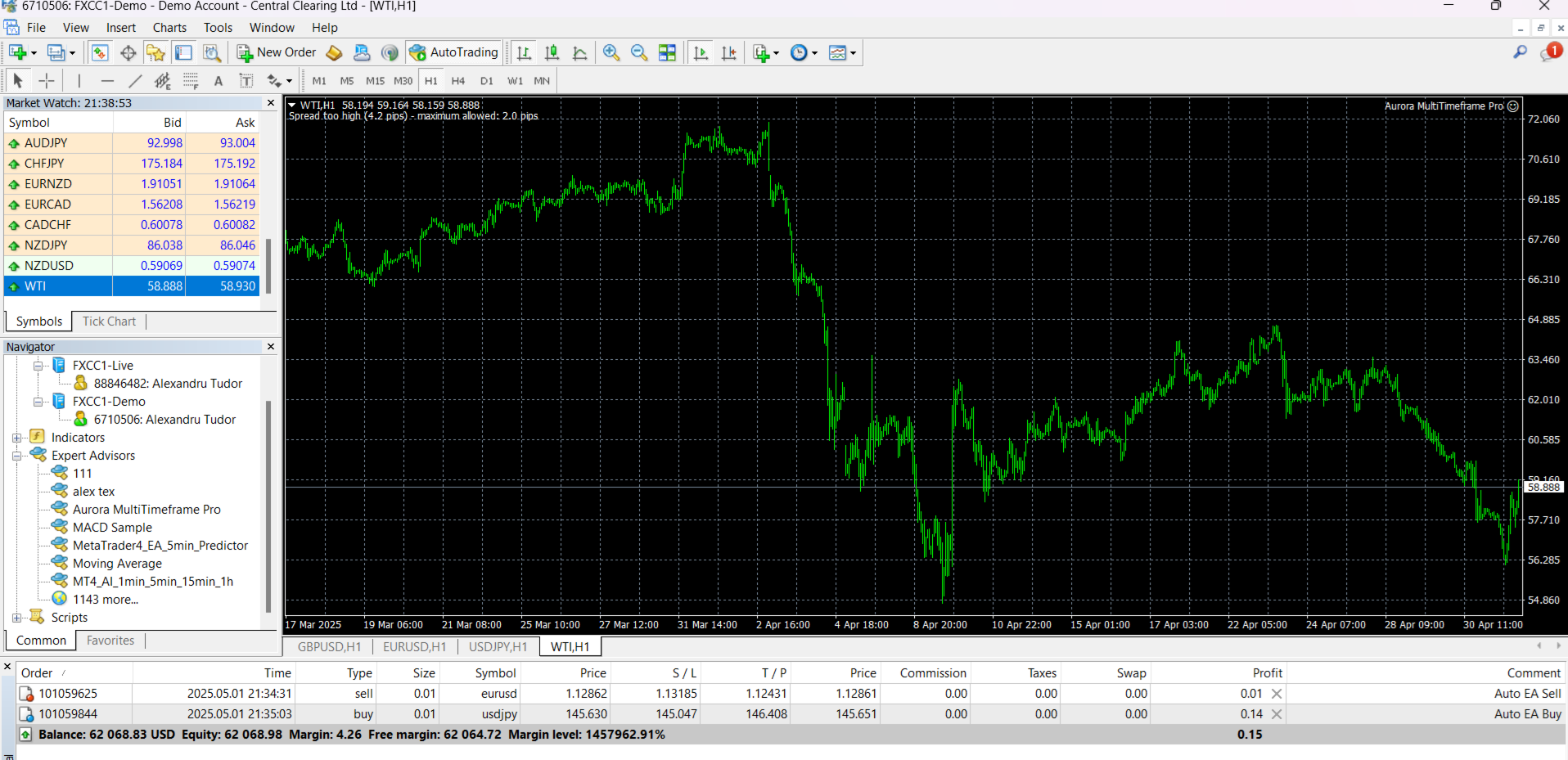 Aurora MultiTimeframe Pro ist ein fortschrittlicher KI-gesteuerter Expert Advisor (EA) für MetaTrader 4, der mehrere Zeitrahmen analysiert und Handelssignale mit hoher Zuverlässigkeit liefert. Er nutzt eine Kombination aus technischen Indikatoren, Marktregime-Erkennung und dynamischem Risikomanagement, um die Handelsleistung zu optimieren.