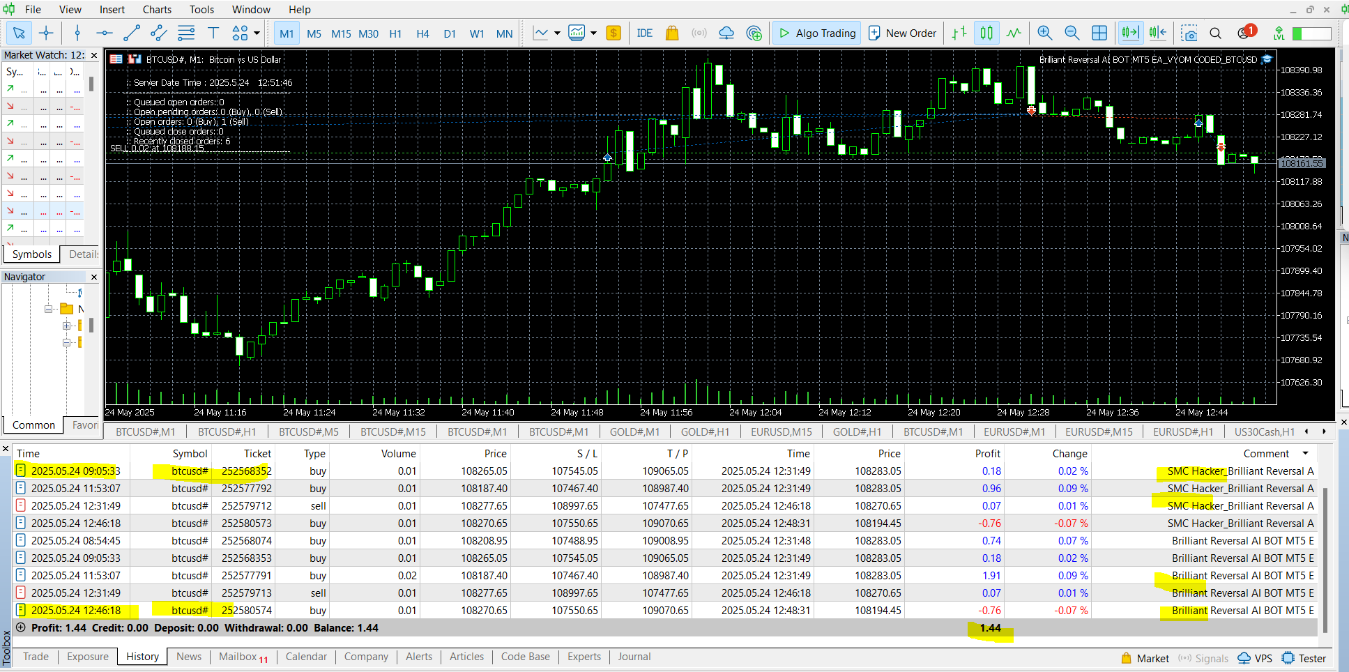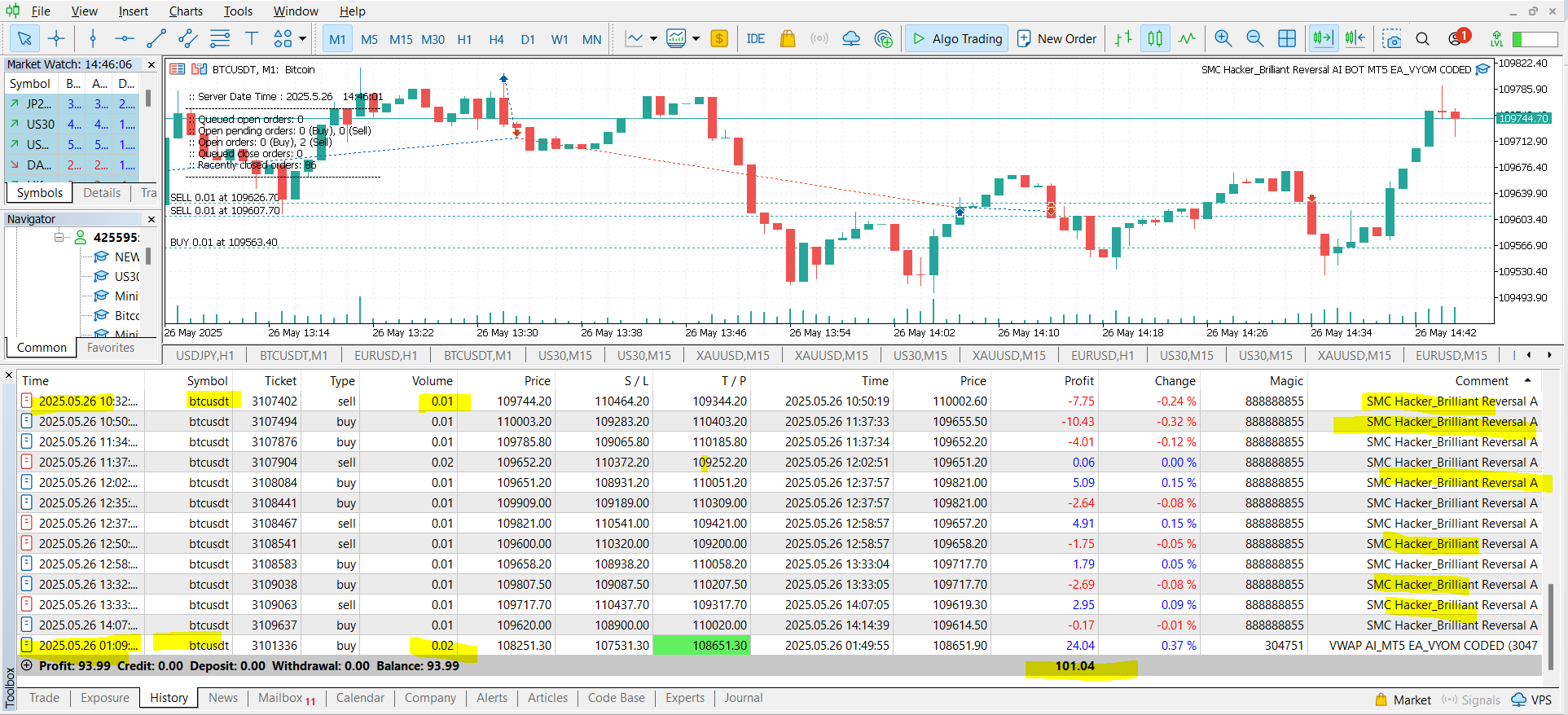 SMC Hacker AI for Bitcoin_ MT5_ Live Result of 26 May- Slaying it- Buy NOW!!