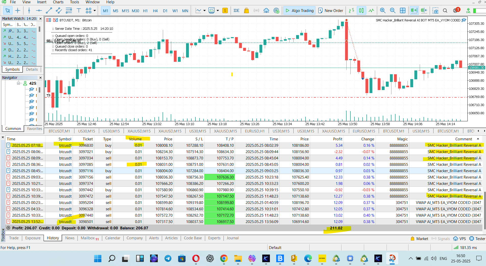 SMC HACKER AI _BTCUSD_ RESULT_25 May 2025_till now