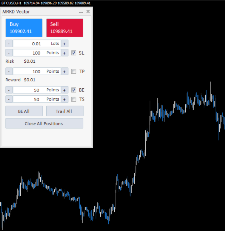 MRKD Vector ist ein leistungsstarkes und intuitives Orderausführungs-Tool, das für den effizienten manuellen Handel im MetaTrader 5 entwickelt wurde. MRKD Vector wurde mit Blick auf Präzision und Geschwindigkeit entwickelt und vereinfacht das Handelsmanagement, indem es Ihnen die volle Kontrolle über Eingaben, Stopps und Ziele gibt - und das alles über eine schlanke Benutzeroberfläche.