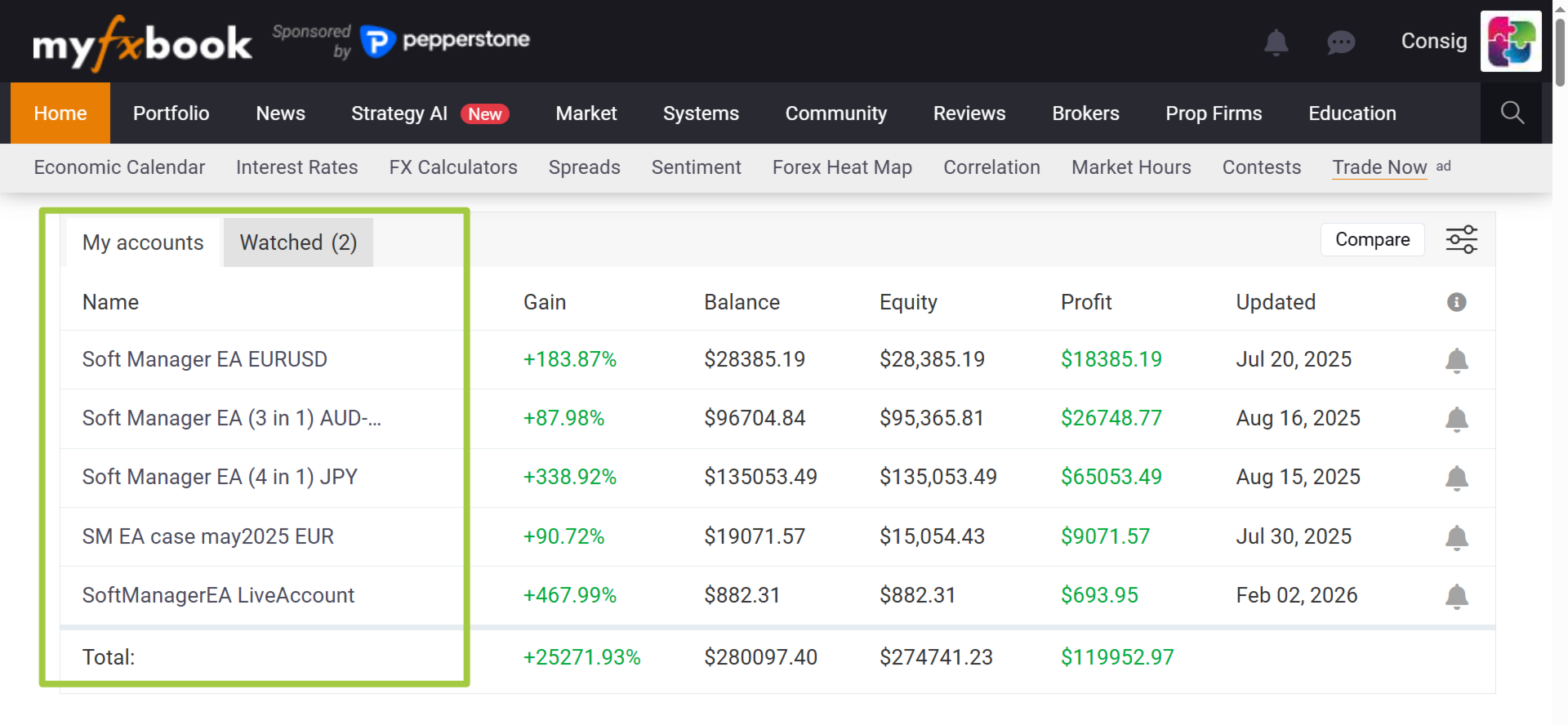 Für nur $49 erhalten Sie einen Monat lang Zugriff auf denselben SoftManager EA, der passives Einkommen auf den verifizierten Konten generiert. Es handelt sich nicht um eine Demo, sondern um den echten EA, der live in Ihrem MetaTrader 5 läuft.