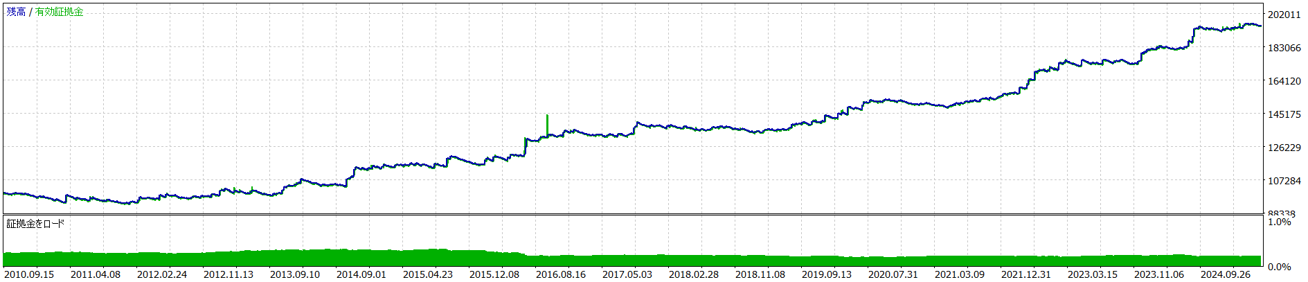 Here's an example: recent charts show that a set file's parameters like this are making a profit. That's according to the real tick backtesting data.