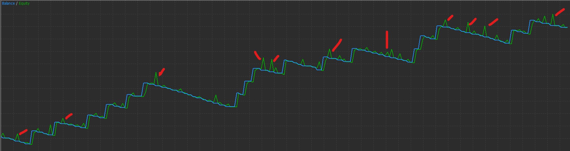 So this chart will make more beautiful. no more sign equity (green line) more than balance (blue line) --- there are many big opportunity to close more profit (Red line sign)