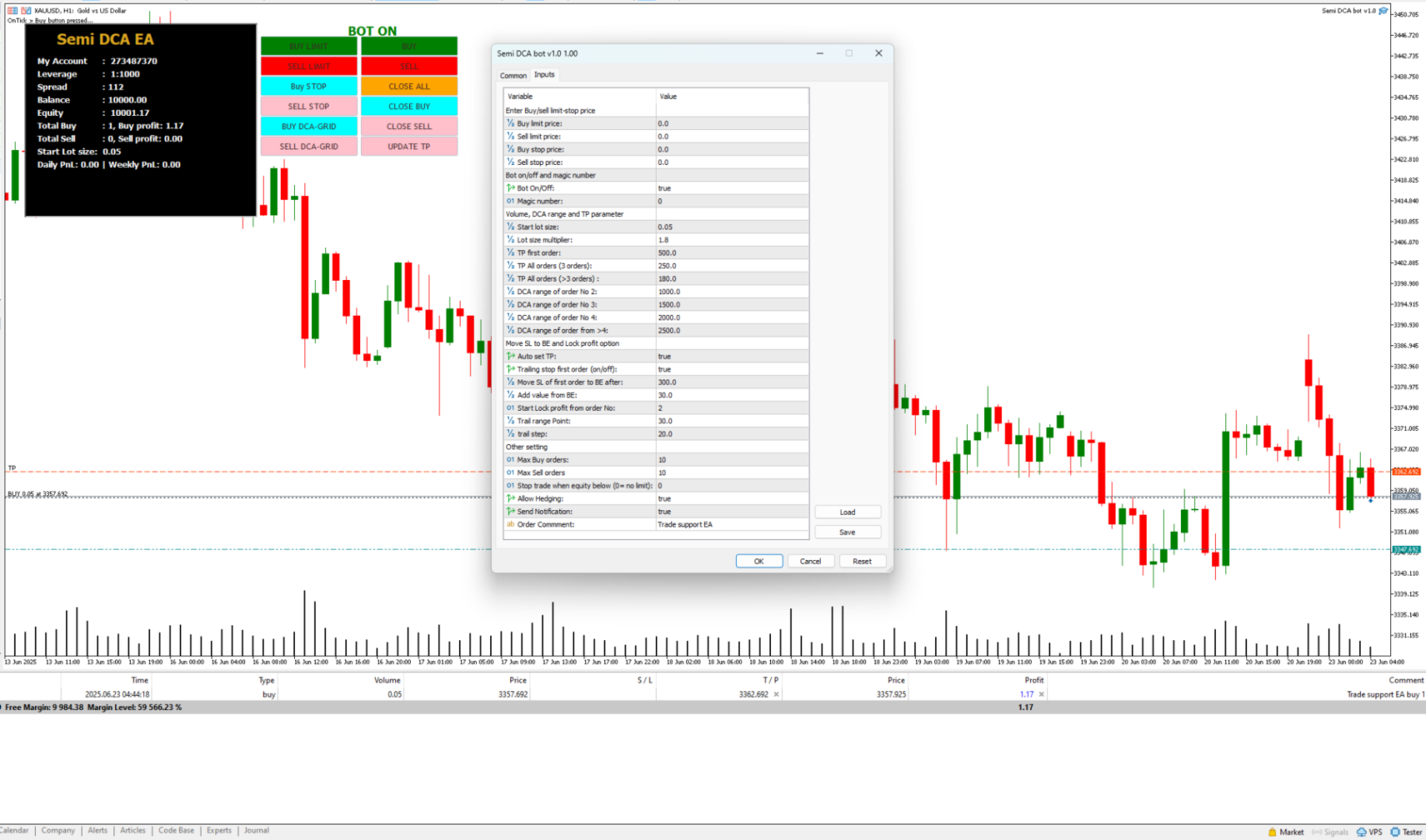 1. Dieser EA wird verwendet, um automatisch Gewinn zu nehmen oder DCA Ihre Aufträge auf MT5 nach den Parametern, die Sie einstellen.
