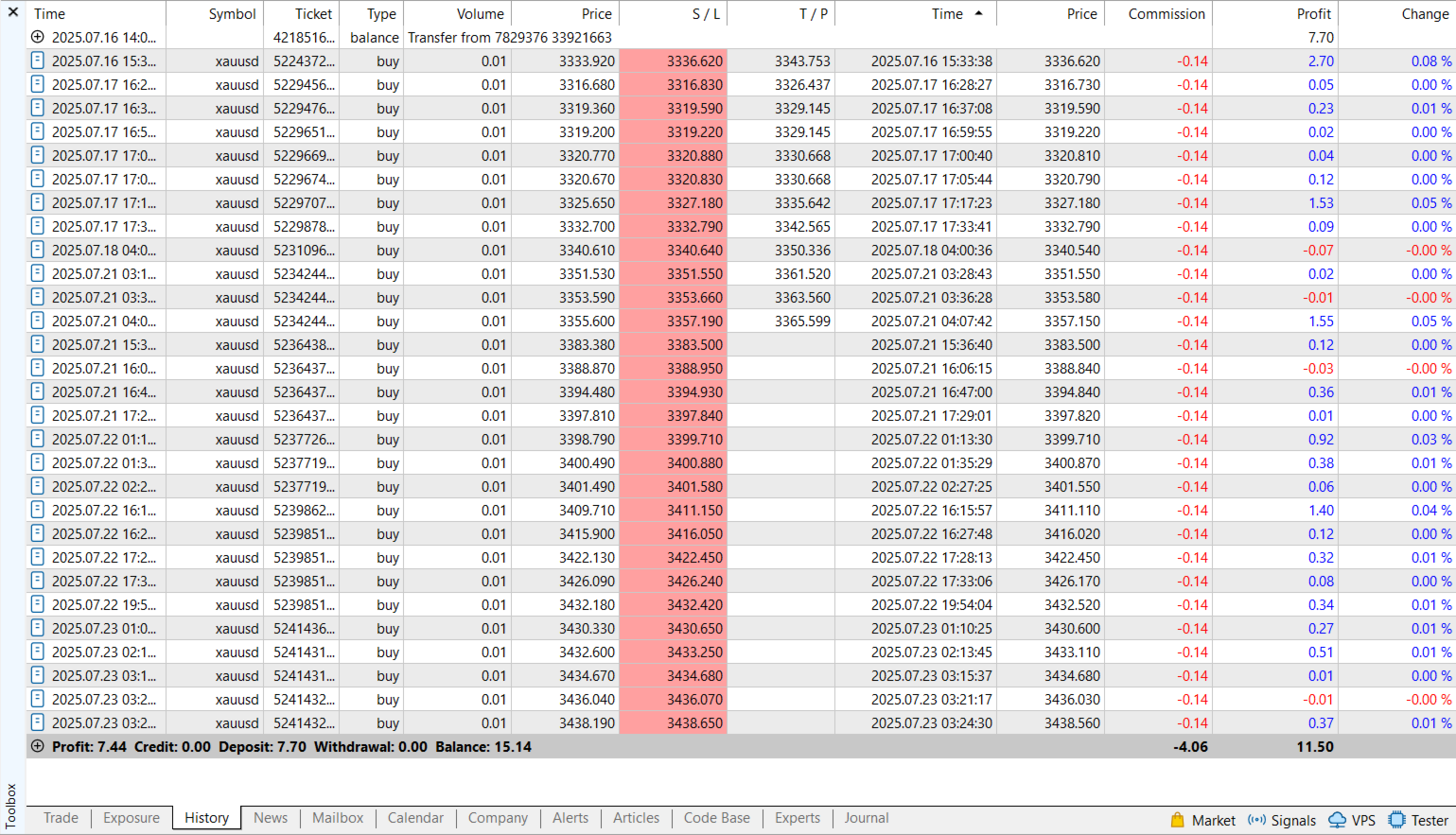 Die Strategie wurde über die gesamte verfügbare Historie hinweg erfolgreich getestet, mit 100 % Modellierungsqualität. Mit Slippage und Provision nahe an den realen Marktbedingungen.