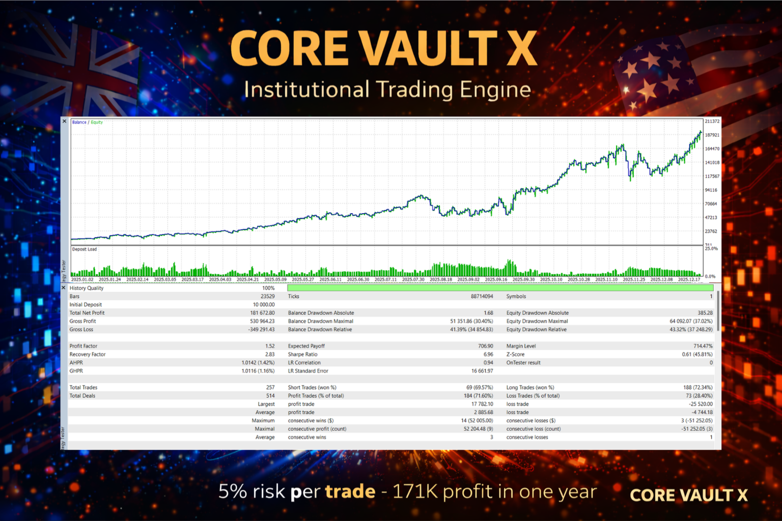 Core VaultX ist ein automatisiertes Handelssystem für Trader, die Disziplin, Struktur und kontrollierte Ausführung schätzen.