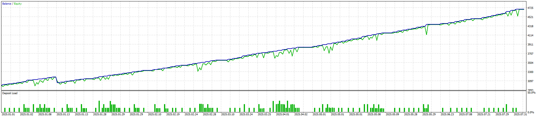 Der EA verwendet kein Grid-Trading, Martingale oder Averaging, was das Risiko eines starken Drawdowns deutlich reduziert. Seine Logik basiert auf der Erkennung potenzieller impulsiver und korrigierender Wellen, der Filterung von Signalen durch Stochastik-Messwerte und der Verwaltung von Trades mit schützenden Stop-Loss- und Take-Profit-Levels.