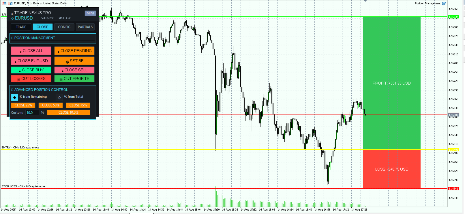 System zum Schließen der Position: Sehr ausgeklügeltes Close Position System, Sie können alle Verluste, alle Gewinne, alle Trades in einem Paar schließen...
