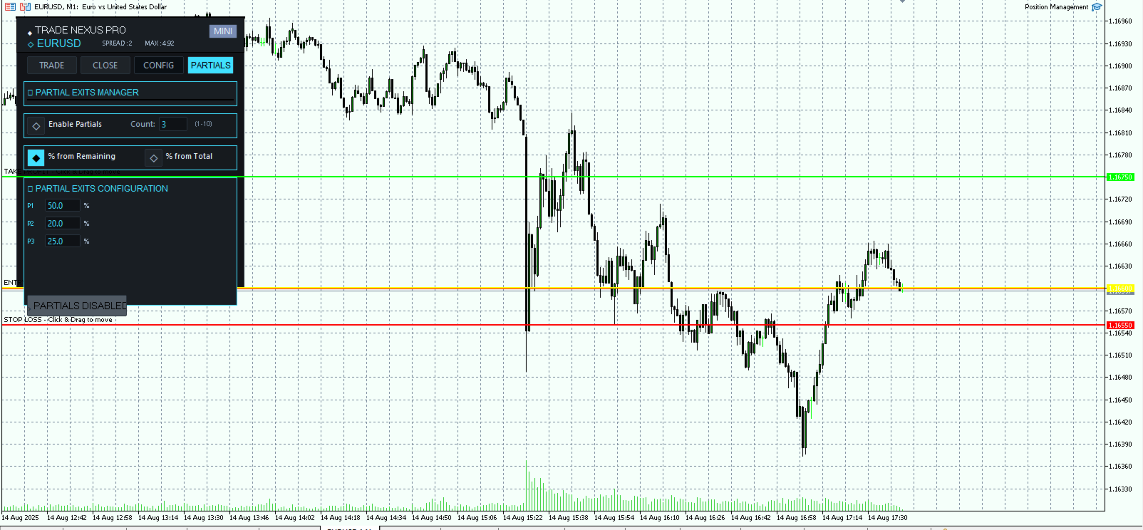 Teilgewinne: Sie können den prozentualen Anteil der Teilgewinne einstellen, die Sie nehmen möchten, Sie können auch mehrere Teilgewinne einstellen, 1 bis 10. Die Teilgewinne können von der ursprünglichen Position oder der aktuellen Position genommen werden.