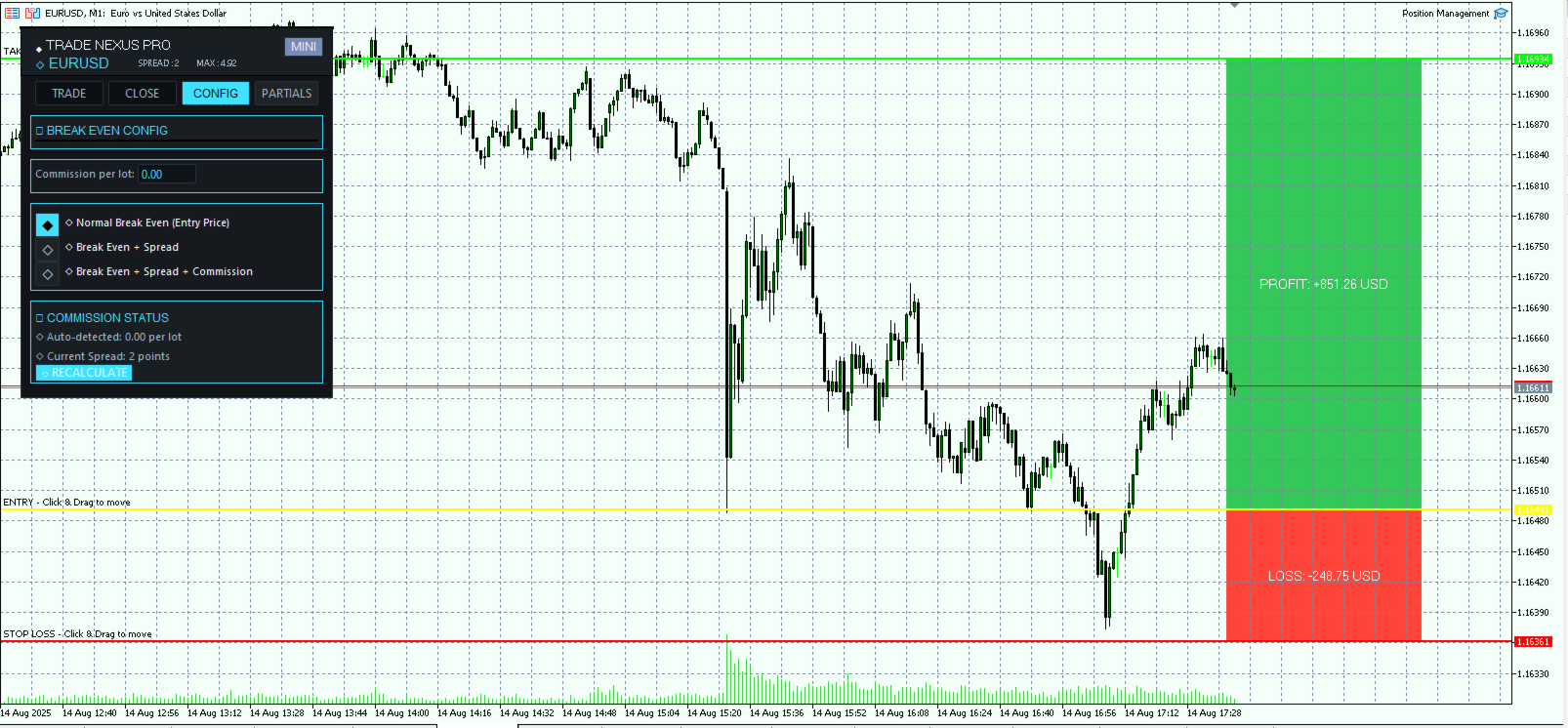 Break-Even-Automatisierung: Sie können eine automatische Break-Even-Funktionalität einstellen, um Gewinne zu schützen, die mit Provisionen und/oder Spreads angepasst werden kann.
