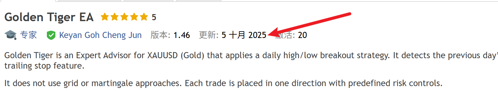 v1.46 was released on 10 October 2025. Could you clarify which earlier version you are comparing it against? The changes from the previous version are limited. The main adjustment was to the trailing stop logic to make it more responsive to price movement. There was no fundamental change to the core strategy.