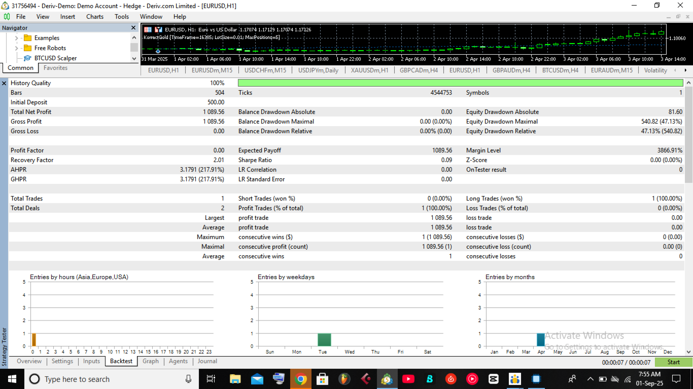 Öffnen Sie MT5, hängen Sie den EA an Ihren H1-Chart an.
